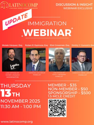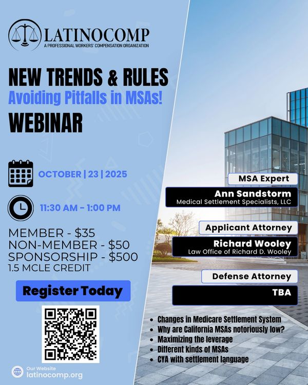 We have partnered with WorkCompCentral to bring you LIVE monthly webinars. All programming will be available for streaming using GoToWebinar to your location of choice, whether at your office or home computer. All LIVE webinars will provide lawyers with an hour and a half of continuing legal education, teaching relevant skills you can immediately put to work in your practices. Our webinars will provide valuable insight, credible expertise, and